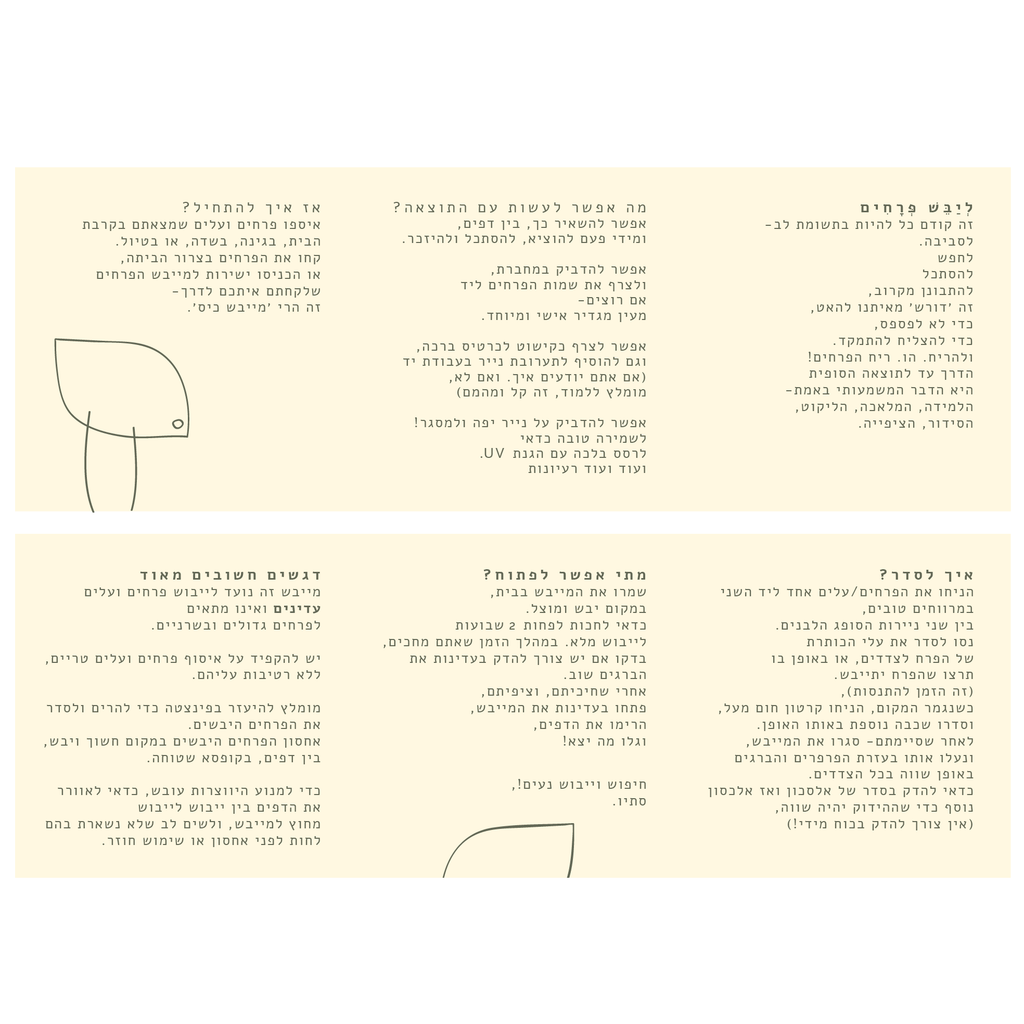 הערכה כוללת: מייבש פרחים עם דפים עגולים ייעודיים לייבוש + כרטיס ברכה תואם + סיפרון הסבר